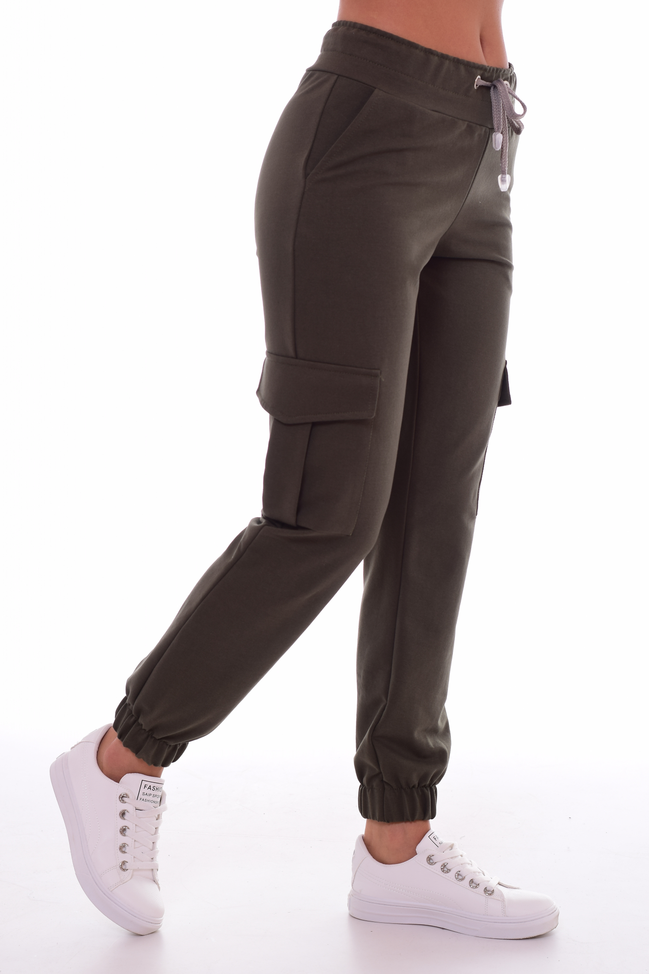 Брюки женские для спорта и отдыха с боковыми карманами. Дополняют брюки накладные карманы по бокам в районе колен. По поясу широкая резинка со шнуром через люверсы. Низ широкий манжет на резинке. Длина изделия по боковому шву: 42 р - 93 см, 44 р. - 93 см, 46 р. - 93 см, 48 р. - 96 см, 50 р. - 96 см, 52 р. - 98 см, 54 р. - 97 см, 56 р. - 97 см. Длина изделия по шаговому шву: 42 р - 70 см, 44 р. - 69 см, 46 р. - 69 см, 48 р. - 70 см, 50 р.- 70 см, 52 р. - 71 см, 54 р. - 70 см, 56 р.- 70 см.