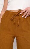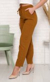 Брюки женские с карманами. По поясу широкая резинка со шнуром. К низу заужены. Длина изделия по боковому шву: 42 р - 100 см, 44 р - 100 см, 46 р - 100 см, 48 р - 101 см, 50 р - 101 см, 52 р - 101 см, 54 - 102 см, 56 - 102 см, 58 р - 103 см, 60 р - 104 см. Длина изделия по шаговому шву: 42 р - 70 см, 44 р. - 70 см, 46 р. - 70 см, 48 р. - 71 см, 50 р.- 71 см, 52 р. - 71 см, 54 р. - 71 см, 56 р.- 71 см, 58 р. - 70 см, 60 р. - 70 см. Рост модели 180 см.