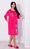 Велюровый халат свободного кроя со спущенной проймой, двумя боковыми карманами, горловина круглая, рукав длина 7/8. Халат застегивается на застежку-молнию. На полочке оригинальные принты. Длина халата: 46-100 см, 48-101 см, 50-102 см, 52-103 см, 54-104 см, 56-105 см, 58-106 мс, 60-107 см. Длина рукава: 46-39 см, 48-39 см, 50-38 см, 52-38 см, 54-37 см, 56-37 см, 58-36 см, 60-36 см. Подкладки нет. Застежка-молния. Плотность ткани-средняя. Конструктивные элементы: карманы в боковых швах. Декор: принты на левой и правой полочке. Уход: деликатная стирка в машине при 30 градусах отдельно от других вещей.