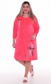 Состав: 80%-хлопок, 20%-ПЭ. Велюровый халат свободного кроя со спущенной проймой, двумя боковыми карманами, горловина круглая, рукав длина 7/8. Халат застегивается на застежку-молнию. На полочке оригинальные принты. Длина халата: 46-100 см, 48-101 см, 50-102 см, 52-103 см, 54-104 см, 56-105 см, 58-106 мс, 60-107 см. Длина рукава: 46-39 см, 48-39 см, 50-38 см, 52-38 см, 54-37 см, 56-37 см, 58-36 см, 60-36 см. Подкладки нет. Застежка-молния. Плотность ткани-средняя. Конструктивные элементы: карманы в боковых швах. Декор: принты на левой и правой полочке. Уход: деликатная стирка в машине при 30 градусах отдельно от других вещей.