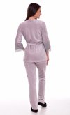Удобный женский комплект из велюра. Состоит из укороченного халата и брюк. Халат на запах с поясом. Вставки из кружева по плечу на полочке и по низу рукава. Брюки прямого покроя. Верх резинка, низ подгибка. Длина халата по спинке: 42 р. - 68 см, 44 р - 69 см, 46 р. - 70 см, 48 р - 71 см, 50 р. - 72 см, 52 р. - 73 см, 54 р. - 74 см , 56 р. - 75 см. Длина брюк по боковому шву: 42 р. - 97 см, 44 р - 98 см, 46 р. - 99 см, 48 р - 100 см, 50 р. - 101 см, 52 р. - 102см, 54 р. - 103 см, 56 р. - 104 см. Длина брюк по шаговому шву: 42 р. - 76 см, 44 р - 76 см, 46 р. - 76 см, 48 р - 77 см, 50 р. - 77 см, 52 р. - 77 см, 54 р. - 78 см, 56 р. - 78 см.