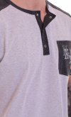 Стильная мужская пижама из кулирки. Состоит из футболки с коротким рукавом и брюк. Футболка - горловина полукруглая. Планка на клепках. На груди карман с принтом в виде печати. Брюки прямого покроя с удобными карманами по бокам и широким поясом. Длина изделия по спинке: 46 р. - 72 см, 48 р - 73 см, 50 р. - 74 см, 52 р. - 75 см, 54 р - 76 см, 56 р. - 77 см, 58 р - 78 см, 60 р - 79 см. Длина изделия по боковому шву: 46 р. - 106 см, 48 р - 106 см, 50 р. - 107 см, 52 р. - 108 см, 54 р - 109 см, 56 р. - 110 см, 58 р - 111 см, 60 р - 112 см. Длина изделия по шаговому шву: 46 р. - 78 см, 48 р - 78 см, 50 р. - 78 см, 52 р. - 78 см, 54 р - 78см, 56 р. - 78 см, 58 р - 78 см, 60 р - 78 см. Подкладки нет. Застежка: планка футболки на кнопках. Плотность ткани: тонкая. Конструктивные элементы: карманы в боковых швах брюк. Резинка в поясе брюк. Высота посадки: средняя. Уход: деликатная стирка в машине при 30 градусах отдельно от других вещей.