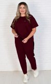 Состав: 72% -хлопок, 20%-пэ, 8%-эластан. Костюм из футера двухнитки состоит из футболки и брюк. Футболка свободного кроя со спущенной проймой, на рукаве и полочке принт-слова. Брюки со средней посадкой, заужены к низу, с двумя боковыми карманами, на широком поясе с резинкой и шнуром. По боковому шву брюк лампасы черного цвета. Длина футболки: 42-60 см, 44-61 см, 46-62 см, 48-63 см, 50-64 см, 52-65 см, 54-66 см, 56-67 см,58-68 см, 58-68 см, 60-69 см. Длина по боковому шву брюк: 42-95 см, 44-96 см. 46-97 см, 48-98 см, 50-99 см, 52-100 см, 54-101 см, 56-102 см, 58-103 см, 60-104 см. Длина по боковому шву брюк: 42-95 см, 44-96 см, 46-97 см, 48-98 см, 50-99 см, 52-100 см, 54-101 см, 56-102 см, 58-103 см, 60-104 см. Длина по шаговому шву брюк: 42-75 см, 44-75 см, 46-73 см, 48-73 см, 50-73 см, 52-73 см, 54-73 см, 56-74 см, 58-74 см, 60-74 см. Подкладки нет. Застежки нет. Плотность ткани: средняя. Уход: машинная стирка 30 градусов отдельно от других вещей.