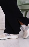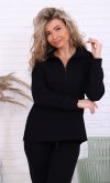 Женский костюм из футера.Толстовка свободного кроя со спущенной проймой, с двумя разрезами по низу. Горловина-стойка, застегивается на молнию до уровня линии груди, рукава длинные на манжете. Брюки свободного кроя с разрезами по низу, двумя боковыми карманами, пояс на широкой резинке со шнуром. Длина толстовки: 42-63 см, 44-64 см, 46-65 см, 48-66 см, 50-67 см. 52-68 см, 54-69 см, 56-70 см. Длина брюк по боковому шву: 42-104 см, 44-105 см, 46-106 см, 48-107 см, 50-108 см, 52-109 см, 54-110 см, 56-110 см. Длина брюк по шаговому шву: 42-80 см, 44-80 см, 46-80 см, 48-80 см, 50-80 см, 52-80 см, 54-80 см, 56-80 см.