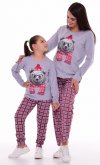 Хлопковая пижама состоит из футболки с длинным рукавом на манжете, горловина круглая, на полочке принт. Брюки свободные, слегка зауженные, к низу на манжете, пояс на резинке. Длина футболки: 30-43 см, 32-46 см, 34-49 см. Длина рукава: 30-37 см, 32-40 см, 34-44 см. Длина брюк по боковому шву: 30-63 см, 32-72 см, 34-81 см. Длина брюк по шаговому шву: 30-41 см, 32-49 см, 34-56 см.