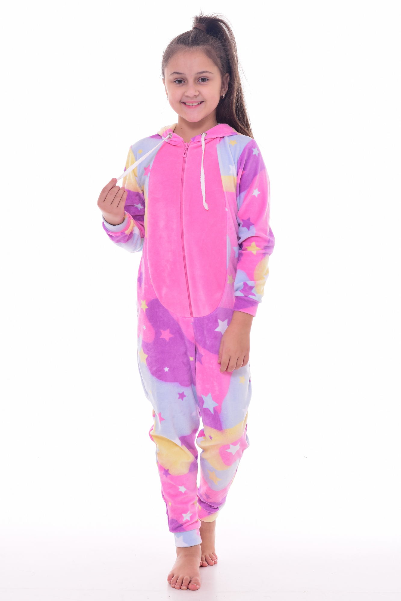 Комбинезон детский - кигуруми «Единорог» из велюра. Очень удобный для ношения дома и для сна. Кигуруми подойдут детям с любым типом фигуры . Пижамы имеют свободный крой и прекрасно сидят.Застегивается на молнию. Чтобы кигуруми был максимально сходным с животным , которого он изображает, одежда дополняется декоративными деталями в виде рога,ушей, гривы, губ, глаз, хвоста. Длина изделия от горловины до низа: 30 р - 94см, 32 р. - 102 см, 34 р. - 110 см.