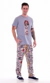 Стильная мужская пижама из кулирки с принтом в виде печати. Состоит из футболки и брюк. Футболка - горловина полукруглая, рибана. Брюки прямого покроя с удобными карманами по бокам. Верх резинка, низ подгибка. Длина изделия по спинке: 46 р. - 68 см, 48 р - 69 см, 50 р. - 70 см, 52 р. - 71 см, 54 р - 73 см, 56 р. - 75 см, 58 р - 77 см, 60 р - 78 см. Длина изделия по боковому шву: 46 р. - 104 см, 48 р - 105 см, 50 р. - 106 см, 52 р. - 107 см, 54 р - 108 см, 56 р. - 109 см, 58 р - 110 см, 60 р - 110 см. Длина изделия по шаговому шву: 46 р. - 77 см, 48 р - 77 см, 50 р. - 77 см, 52 р. - 77 см, 54 р - 77см, 56 р. - 77 см, 58 р - 77 см, 60 р - 77 см. Подкладки нет. Застежки нет. Плотность ткани: тонкая. Карманы в боковых швах брюк. Резинка в поясе брюк. Высота посадки: средняя. Декор: принт на футболке. Уход: деликатная стирка в машине при 30 градусах отдельно от других вещей.