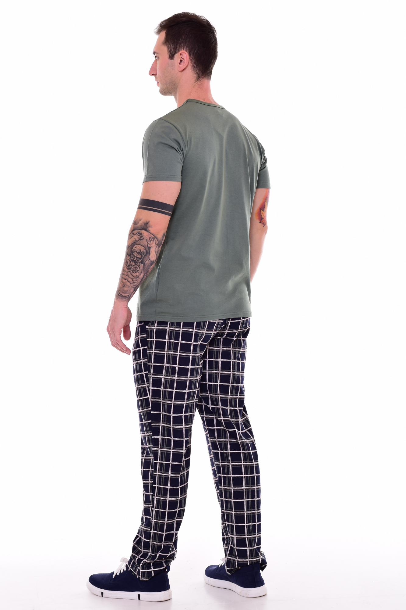 Стильная мужская пижама из кулирки с принтом в виде печати. Состоит из футболки и брюк. Футболка - горловина полукруглая, рибана. Брюки прямого покроя с удобными карманами по бокам. Верх резинка, низ подгибка. Длина изделия по спинке: 46 р. - 68 см, 48 р - 69 см, 50 р. - 70 см, 52 р. - 71 см, 54 р - 73 см, 56 р. - 75 см, 58 р - 77 см, 60 р - 78 см. Длина изделия по боковому шву: 46 р. - 104 см, 48 р - 105 см, 50 р. - 106 см, 52 р. - 107 см, 54 р - 108 см, 56 р. - 109 см, 58 р - 110 см, 60 р - 110 см. Длина изделия по шаговому шву: 46 р. - 77 см, 48 р - 77 см, 50 р. - 77 см, 52 р. - 77 см, 54 р - 77см, 56 р. - 77 см, 58 р - 77 см, 60 р - 77 см. Подкладки нет. Застежки нет. Плотность ткани: тонкая. Карманы в боковых швах брюк. Резинка в поясе брюк. Высота посадки: средняя. Декор: принт на футболке. Уход: деликатная стирка в машине при 30 градусах отдельно от других вещей.