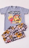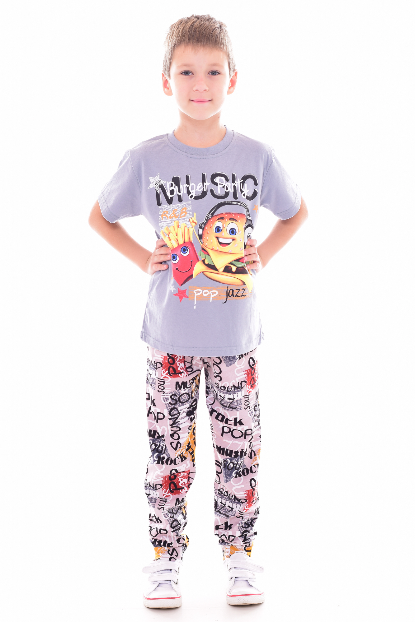 Пижама подростковая из кулирки. Состоит из футболки и брюк. Футболка - горловина полукруглая притачная. Рукав притачной. Брюки на манжете, верх резинка. Длина изделия 38 размера: длинав футболки по спинке -58 см, длина брюк по боковому шву - 93 см, длина по шаговому шву - 69см.