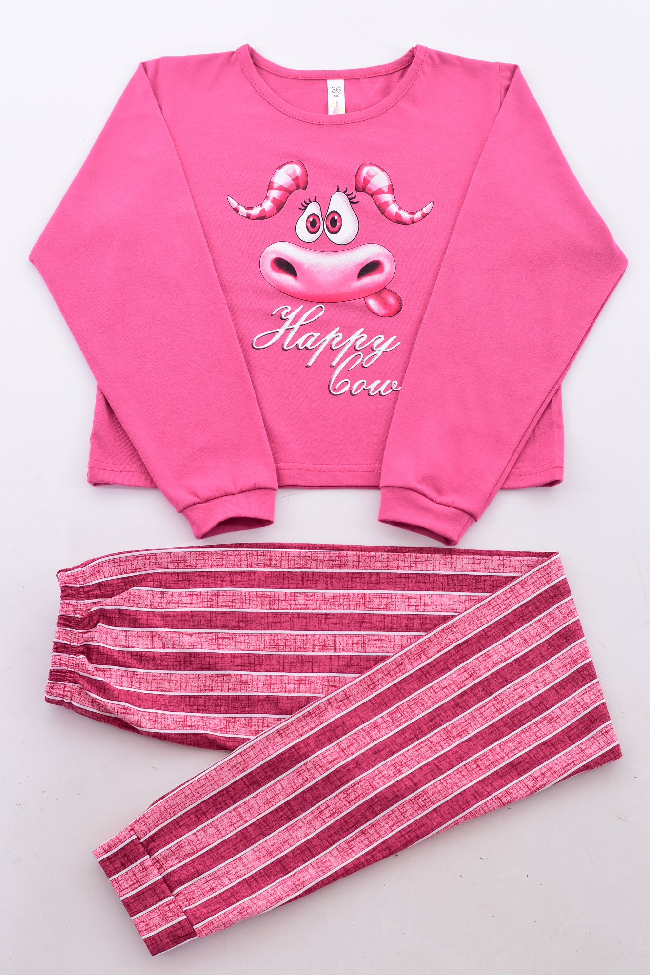Пижама детская из кулирки с принтом в виде печати - символ 2021 года .Футболка с длинным рукавом на манжете. Брюки прямого покроя , к низу немного заужены, на манжете.Верх резинка.Длина изделия по спинке: 36 р - 41 см, 38 р. - 56 см, 40 р. - 49 см. Длина изделия по боковому шву: 36 р - 87 см, 38 р. - 92 см, 40 р. - 98 см. Длина изделия по шаговому шву: 36 р - 62 см, 38 р. - 67 см, 40 р. - 75 см.