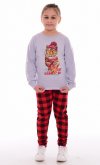 Подростковая хлопковая пижама, футболка с длинным рукавом на манжете, на полочке новогодний принт. Брюки заужены к низу на манжете, пояс на резинке. Длина футболки: 36-51 см, 38-54 см, 40-57 см. Длина рукава: 36-47 см, 38-50 см, 40-53 см. Длина брюк по боковому шву: 36-62 см, 38-70 см, 40-75 см. Длина брюк по шаговому шву: 36-62 см, 38-70 см, 40-75 см.