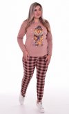 Женская хлопковая пижама состоит из футболки свободного кроя с длинным рукавом, на полочке принт. Брюки заужены к низу на манжете, пояс на резинке. Длина футболки по спинке: 42-62 см, 44-64 см, 48-65 см, 50-67 см, 52-68 см, 54-69 см, 56-70 см. Длина рукава: 42-55 см, 44-55 см, 46-55 см, 48-55 см, 50-55 см, 52-56 см, 54-56 см, 56-57 см. Длина брюк по внешнему шву: 42-102 см, 44-102,5 см, 46-103 см, 48-103,5 см, 50-104 см, 52-104,5 см. Подкладки нет. Застежки нет. Плотность ткани: тонкая. Уход: машинная стирка 30 градусов отдельно от других вещей.