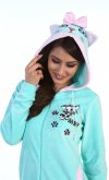 Нежная тёплая пижама из велюра приводит в вострог всех членов семьи! Комбинезон с центральной застёжкой и яркими контрастными полочками. По линии талии резинка, по бокам карманы.