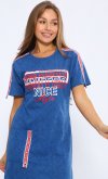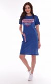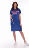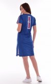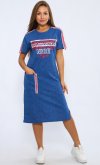 Стильная женская туника из кулирки. Приталеного покроя. С карманом.На кармане принт в виде отделочной ленты.Также отделочная лента присутствует на плечевых швах в виде пагонов. На ленте принт-люверсы.Присутствует разрез с одого бока. Длина изделия 50 размера: длина по спинке - 106 см. Состав: 100%-хлопок.