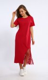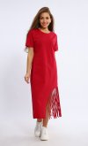 Состав: 100% хлопок Женское хлопковое платье-футболка свободного кроя в длине миди. Горловина круглая по низу, рукава манжеты. По низу платья ассиметрично с одной стороны бахрома-тренд сезона. Длина:42-117,44-118,46-119,48-120,50-121,52-122,54-123,56-124,58-124,60-125. Обхват груди: 42-46,44-48,46-50,48-52,50-54,52-56,54-58,56-60,58-62,60-64. Обхват бедер: 42-50,44-52,46-54,48-56,50-58,52-60,54-62,56-64,58-66,60-68. Длина рукава с плечом: 42-31,44-31,46-32,48-32,50-33,52-34,54-35,56-36,58-37,60-38.