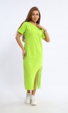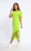 Состав: 100% хлопок Женское хлопковое платье-футболка свободного кроя в длине миди. Горловина круглая по низу, рукава манжеты. По низу платья ассиметрично с одной стороны бахрома-тренд сезона. Длина:42-117,44-118,46-119,48-120,50-121,52-122,54-123,56-124,58-124,60-125. Обхват груди: 42-46,44-48,46-50,48-52,50-54,52-56,54-58,56-60,58-62,60-64. Обхват бедер: 42-50,44-52,46-54,48-56,50-58,52-60,54-62,56-64,58-66,60-68. Длина рукава с плечом: 42-31,44-31,46-32,48-32,50-33,52-34,54-35,56-36,58-37,60-38.