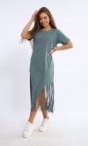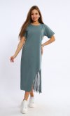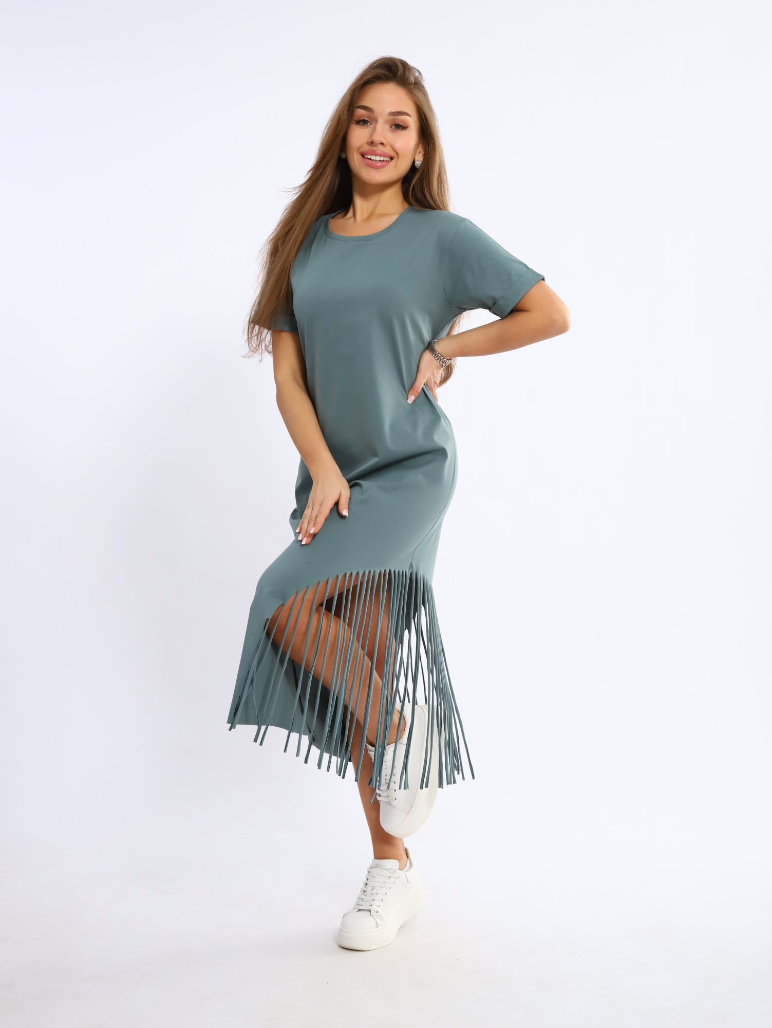 Состав: 100% хлопок Женское хлопковое платье-футболка свободного кроя в длине миди. Горловина круглая по низу, рукава манжеты. По низу платья ассиметрично с одной стороны бахрома-тренд сезона. Длина:42-117,44-118,46-119,48-120,50-121,52-122,54-123,56-124,58-124,60-125. Обхват груди: 42-46,44-48,46-50,48-52,50-54,52-56,54-58,56-60,58-62,60-64. Обхват бедер: 42-50,44-52,46-54,48-56,50-58,52-60,54-62,56-64,58-66,60-68. Длина рукава с плечом: 42-31,44-31,46-32,48-32,50-33,52-34,54-35,56-36,58-37,60-38.