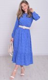 Рост: 164-170. Состав: 100%-ПЭ. Платье свободного кроя в длине миди, А-силуэт в расцветке мелкий горошек. Горловина круглая, рукав длинный- фонарик, по окату рукава и низ рукава присборен. По низу платья широкая оборка. При желании можно к платью подобрать пояс и подчеркнуть линию талии. Ткань шелковистая, очень приятная к телу. Длина платья: 46-128 см, 48-129 см, 50-130 см, 52-131 см, 54-132 см, 56-133 см. Длина рукава: 46-63 см, 48-63 см, 50-63 см, 52-64 см, 54-64 см, 56-64 см.