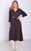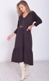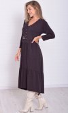 Рост: 164-170. Состав: 80%-пэ, 15%-вискоза, 5%-эластан. Женское платье в длине миди, «V»-образная горловина с имитацией застежки на пуговицы, рукав длиной 3/4.Платье «А» силуэта с нижней оборкой и небольшим удлинением по спинке. Длина платья по спинке: 48-119 см, 50-120 см, 52-121 см, 54-122 см, 56-122 см, 58-123 см, 60-124 см, 62-125 см. Длина рукава: 48-44 см, 50-44 см, 52-45 см, 54-45 см, 56-46 см, 58-46 см, 60-46 см, 62-46 см. Длина платья спереди : 48-113 см, 50-114 см, 52-115 см, 54-115 см, 56-116 см, 58-117 см, 60-118 см, 62-119 см.