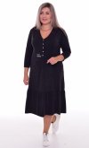Рост: 164-170. Состав: 80%-пэ, 15%-вискоза, 5%-эластан. Женское платье в длине миди, «V»-образная горловина с имитацией застежки на пуговицы, рукав длиной 3/4.Платье «А» силуэта с нижней оборкой и небольшим удлинением по спинке. Длина платья по спинке: 48-119 см, 50-120 см, 52-121 см, 54-122 см, 56-122 см, 58-123 см, 60-124 см, 62-125 см. Длина рукава: 48-44 см, 50-44 см, 52-45 см, 54-45 см, 56-46 см, 58-46 см, 60-46 см, 62-46 см. Длина платья спереди : 48-113 см, 50-114 см, 52-115 см, 54-115 см, 56-116 см, 58-117 см, 60-118 см, 62-119 см.