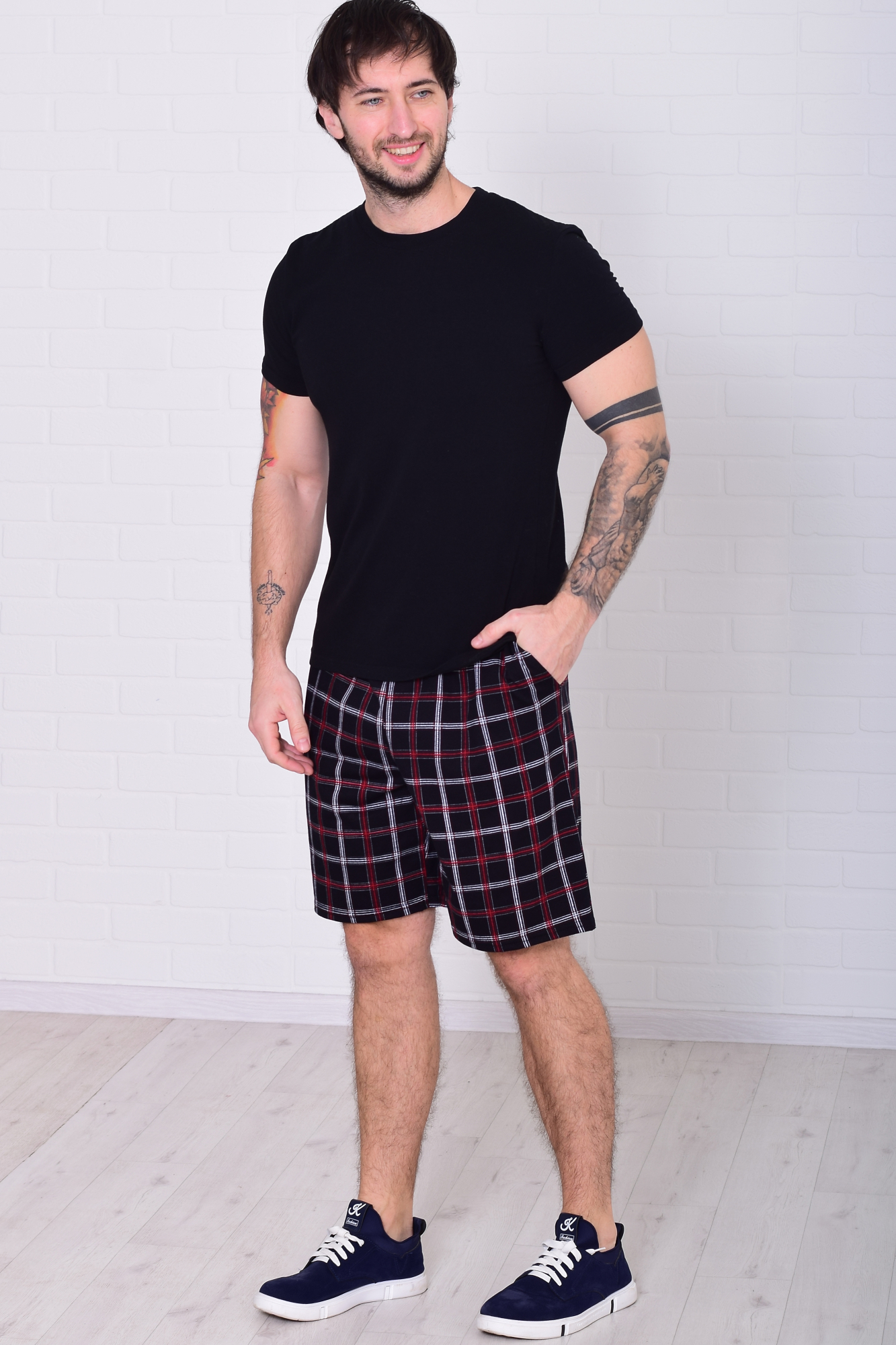Состав: 100%-хлопок. Шорты свободного кроя, с двумя боковыми карманами, пояс на резинке со шнуром. Длина по боковому шву: 46-51, 48-51 см, 50-53 см, 52-54 см, 54-55 см, 56-56 см, 58-56 см, 60-58 см. Длина по шаговому шву: 46-23 см, 48-23 см, 50-25 см, 52-25 см, 54-26 см, 56-26 см,58-27 см, 60-28 см.