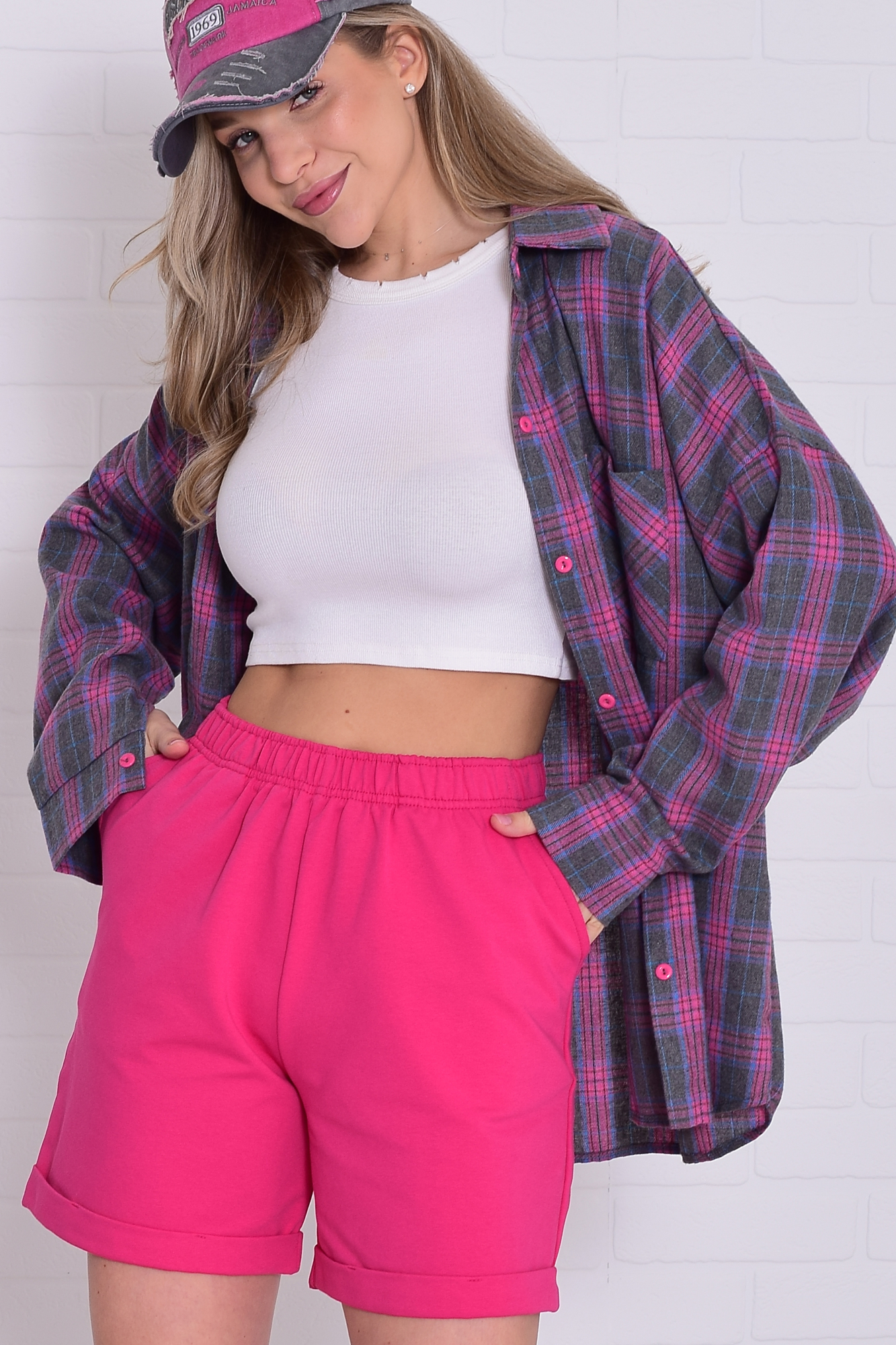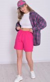 Состав: 92% - хлопок, 8%-эластан. Шорты свободного кроя, с боковыми карманами с отрезным бочком, с отворотом по низу,пояс шорт на резинке. Длина бокового шва: 42-47,44-47,46-47,48-47,50-47,52-47-54-49,56-52. Длина шагового шва: 42-15,44-16,46-1,48-16,50-16,52-16,54-18,56-18. Ширина в бедрах: 42-52,44-54,46-56,48-58,50-60,52-62,54-64,56-66. Ширина в талии: 42-46,44-48,46-50,48-52,50-54,52-56,54-58,56-60.
