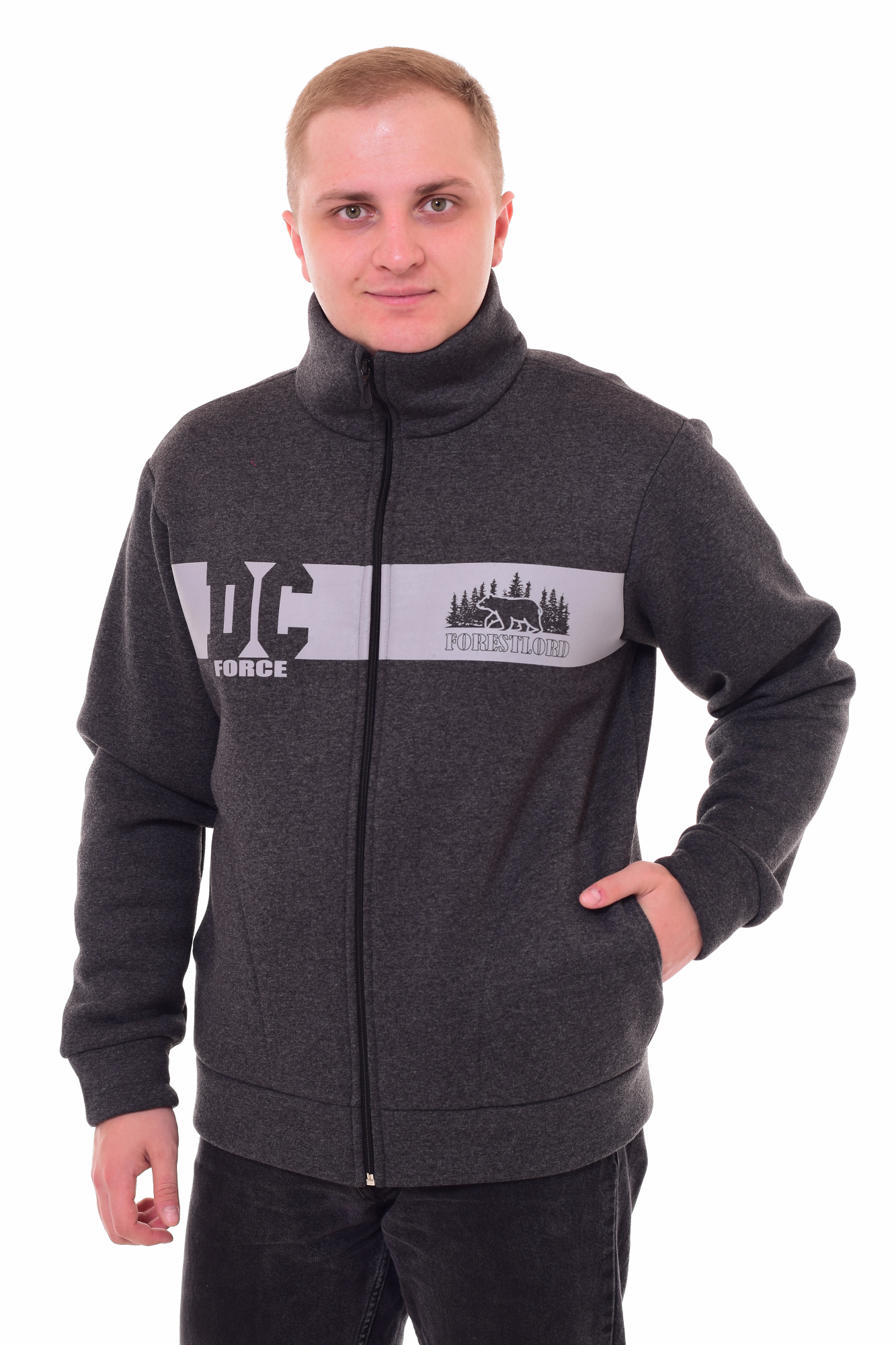 Оригинальная мужская толстовка из футера начес. Горловина стойка .Рукав длинный на манжете. Застежка - молния. Низ - пояс. Удобные карманы . Принт в виде печати. Длина изделия по спинке: 46 р - 68 см, 48 р - 69 см, 50 р. - 70 см, 52 р. - 71 см, 54 р. - 72см, 56 р. - 73 см, 58 р. - 74 см.