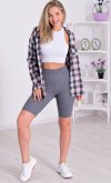 Велосипедки в стиле «спорт-шик» из хлопка в рубчик. По талии широкая эластичная лента, зафиксированная плоским трикотажным швом, что препятствует скручиванию. Посадка чуть выше средней, длина выше колена. Длина по боковому шву: 42-50,44-50,5,46-51,48-51,5,50-52,52-52.5,54-53,56-53,5. Длина по шаговому шву: 42-25,44-25,46-25,48-26,50-26,52-27,54-27,56-27.