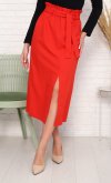 Прямая юбка с разрезом из плательной ткани с завышенной талией. Верх на резинке со шлевками. Пояс. Такое изделие эффектно подчеркивает изящность силуэта и стройность женских ножек.