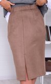 Состав: 95%-пэ, 5%-эластан. Рост: 164-170 Женская юбка прямого кроя из искусственной замши с разрезом спереди. Пояс на резинке. Длина по боковому шву: 44-73,5 см, 46-74 см, 48-74 см, 50-74,5 см, 52-75 см, 54-75,5 см, 56-76 см.